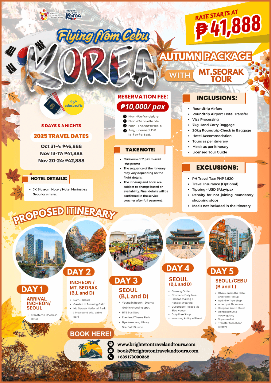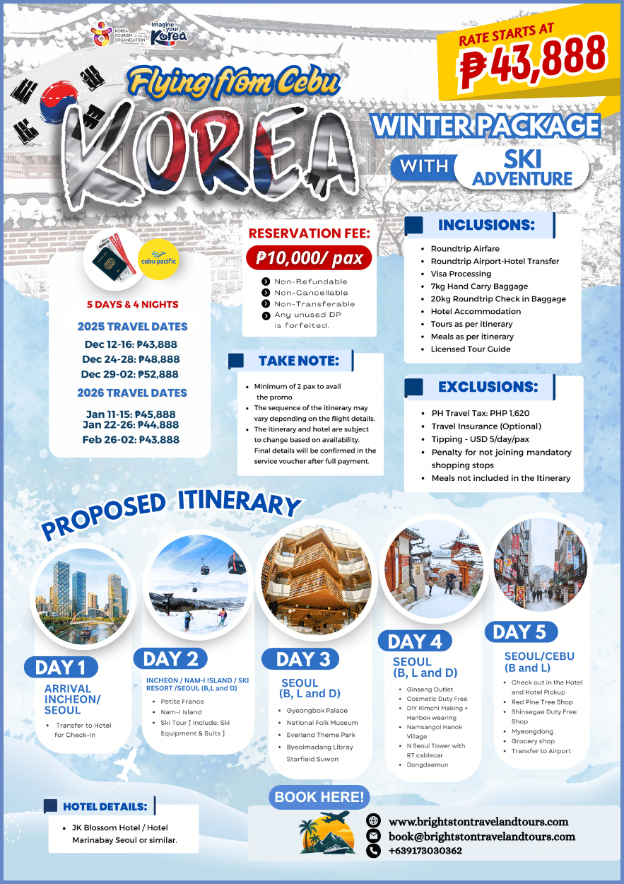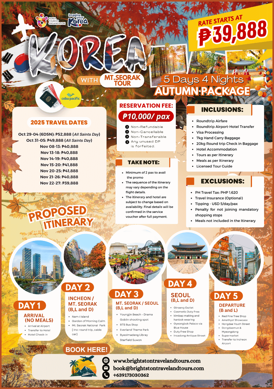 Whether it’s the fiery colors of Autumn, the snowy charm of Winter, the pink blossoms of Spring, or the sunny adventures of Summer—Korea is breathtaking all year round!