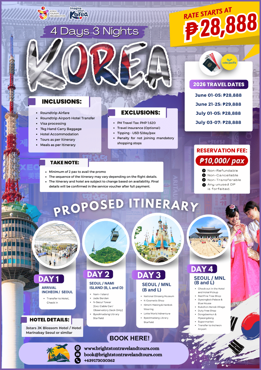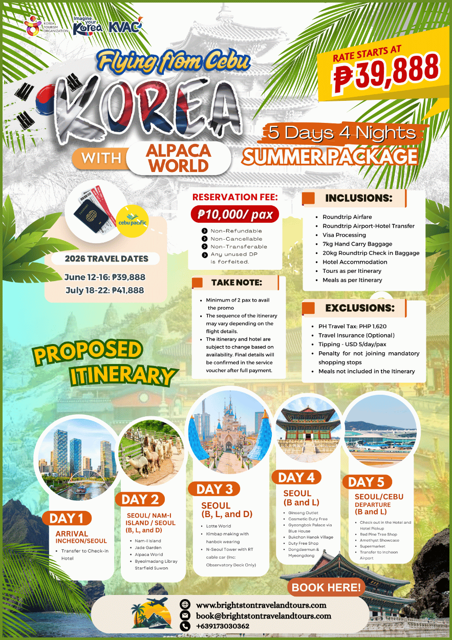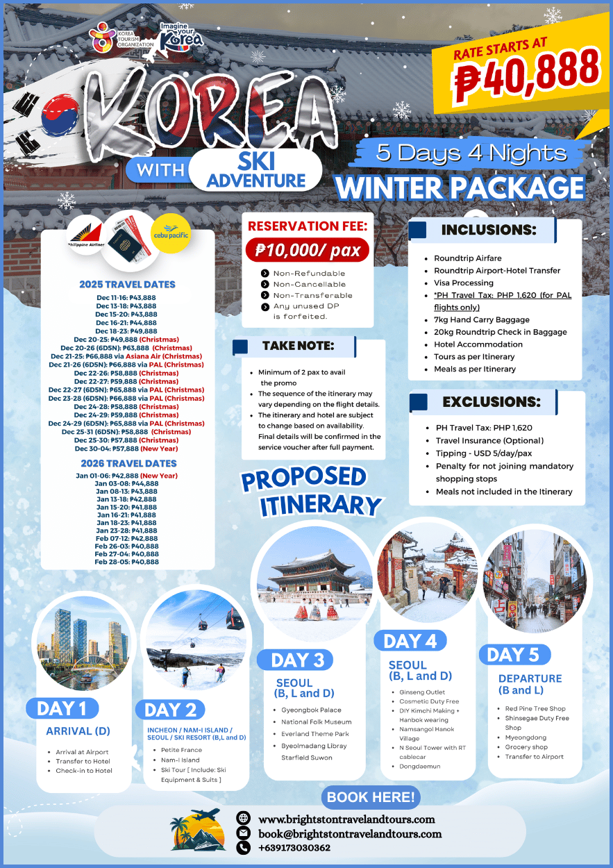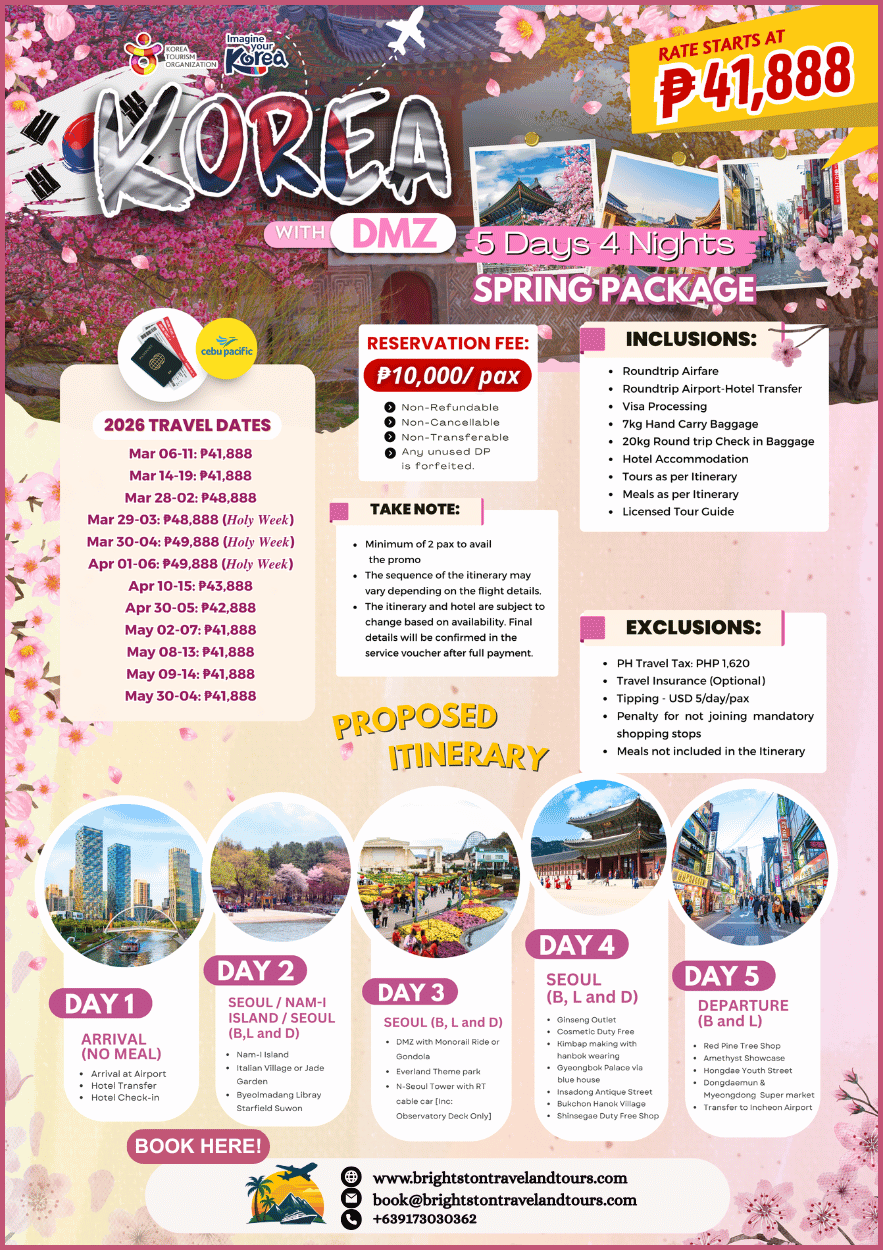 Whether it’s the fiery colors of Autumn, the snowy charm of Winter, the pink blossoms of Spring, or the sunny adventures of Summer—Korea is breathtaking all year round!
