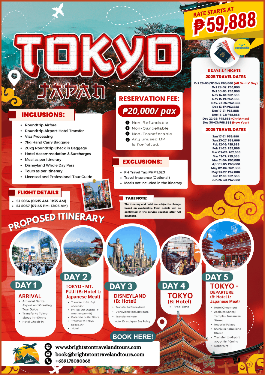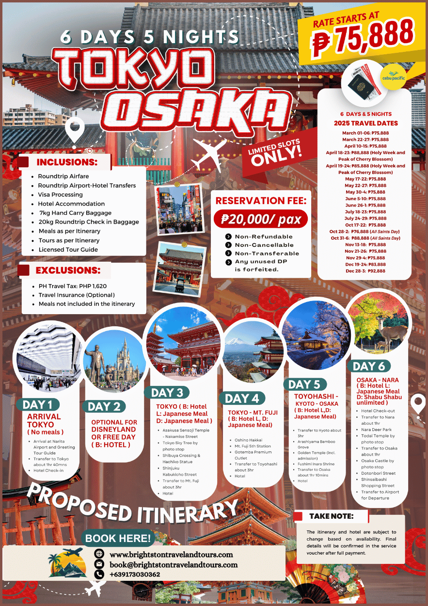 From the breathtaking views of Mt. Fuji, the magic of Tokyo Disneyland, the historic charm of Kyoto & Osaka, to the winter wonderland of the Hokkaido Snow Festival—Japan is waiting for you